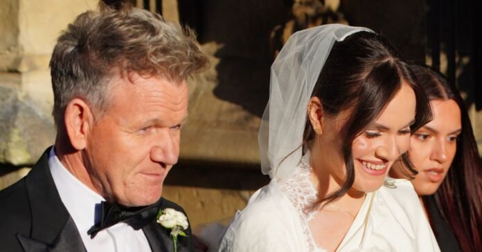 On her wedding day, Holly Ramsay appeared calm and composed, accompanied by her father Gordon Ramsay as she headed to Bath Abbey for her marriage to Olympian Adam Peaty. Despite family tensions leading up to the wedding, Holly’s radiant demeanor and careful concealment of her dress under a white cloak were noted by experts.