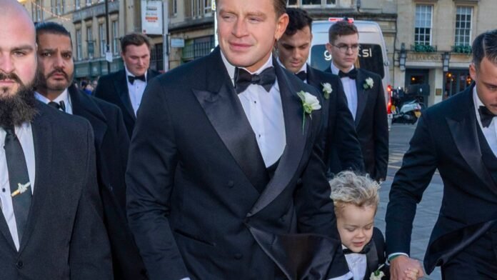 Olympic swimmer Adam Peaty made a charming entrance with his son George to marry Holly Ramsay. The adorable five-year-old looked precious in a tiny tuxedo and bow tie as they arrived at Bath Abbey for the ceremony. Adam, 30, was accompanied by his groomsmen, all looking dapper.