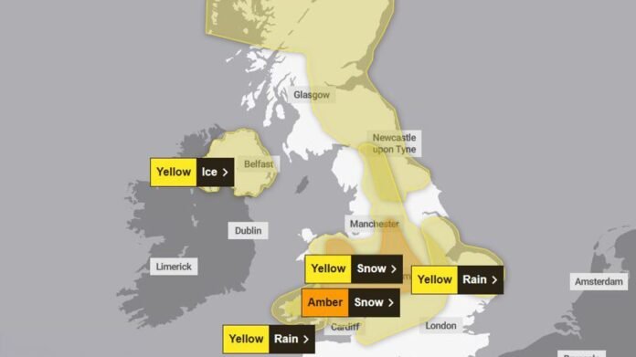 The most severely affected areas are predicted to be the West Midlands and Eastern Wales, where an amber weather warning for snow has been issued, impacting cities like Birmingham, Leicester, Nottingham, and Worcester with anticipated travel disruptions and perilous conditions. The Met Office also issued a rare red warning for dangerous winds in Cornwall and the Isles of Scilly, with ongoing strong winds and potential hazards in the region.