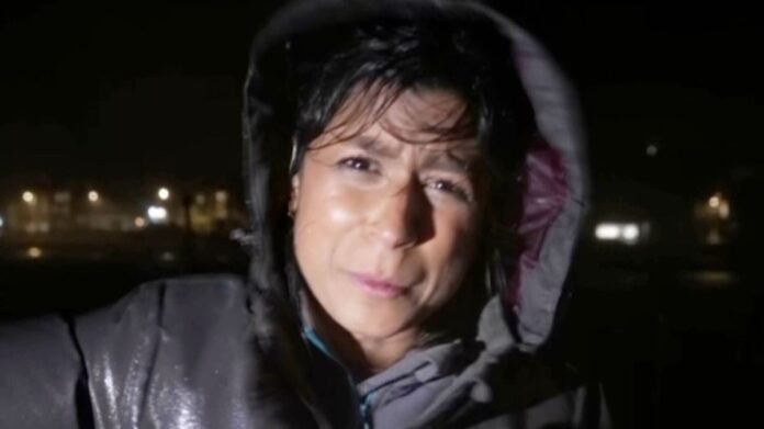 National anchor Charlene White introduced the weather segment, mentioning reporters dispersed across the country, starting with Sangita. Battling the elements, Sangita noted the increasingly strong winds, expected to reach 40 mph, making it difficult to remain stable.